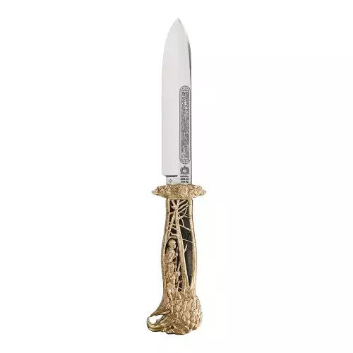 Intricate Artistry and Historical Significance: This silver coin is not just a piece of metal; it's a piece of history. The handle's intricate forest designs and the majestic eagle's head at the base are gilded in 24-karat gold, offering a stunning contrast against the antique silver blade. The design intricacies extend beyond mere aesthetics, incorporating elements that reflect Roosevelt’s life philosophies and his indelible impact on American environmental stewardship.